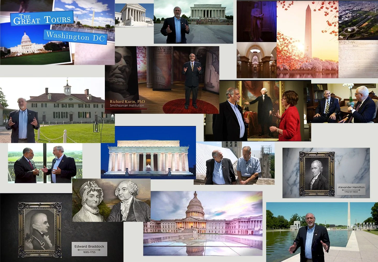 This exciting 24-episode travelogue—lavishly illustrated with thousands of historic images, animated maps, location footage—rests on the vast historical and administrative resources of the Smithsonian, and on the brilliant and engaging commentary of Dr. Richard Kurin, Smithsonian Distinguished Scholar and Ambassador-at-Large. Dr. Kurin rounds out your view of DC with a series of special interviews with expert guests interspersed throughout. Among others, you'll get special insight into the meaning of military memorials from General Colin Powell himself, look into the Kennedy Center and arts in Washington with renowned cellist Yo Yo Ma, and explore the relationship of food and American history with celebrated chef José Andrés.